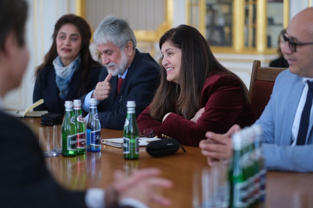 Wizyta Pani Mister rozpoczęła się od spotkania z JM Rektorem UW, prof. Alojzym Nowakiem. W rozmowie uczestniczyli również prof. Maciej Raś, prorektor ds. studenckich i jakości kształcenia oraz Robert Grey, kanclerz UW, a Wydział Kultur Azji i Afryki reprezentowały dr Magdalena Kubarek, prodziekan ds. studenckich, oraz prof. Katarzyna Pachniak, kierownik Katedry Arabistyki i Islamistyki. Podczas spotkania poruszono kwestie współpracy akademickiej i roli uniwersytetów w budowaniu dialogu międzykulturowego, a także realizowanego na UW programu umożliwiającego kontynuację nauki studentkom i studentom z Palestyny.
