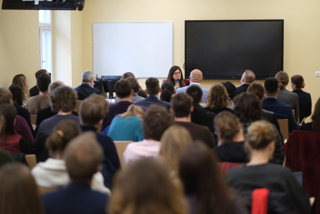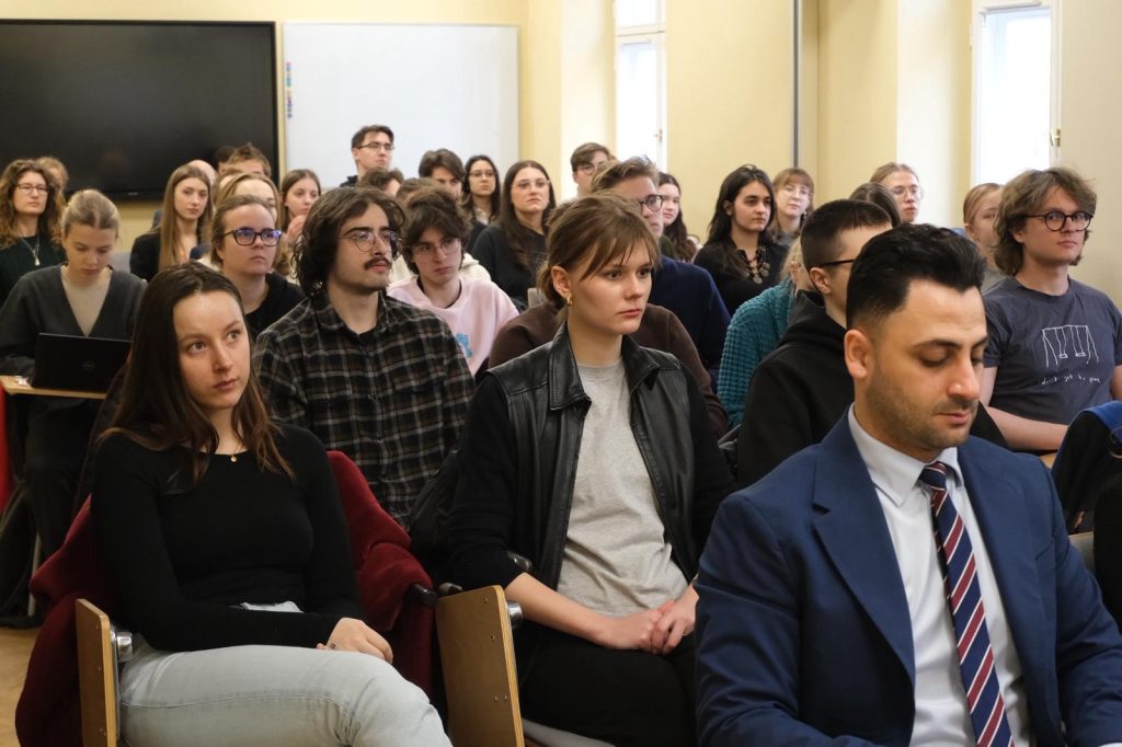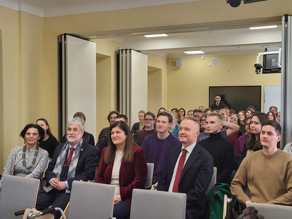 Następnie Pani Minister wygłosiła wykład nt. sytuacji humanitarnej w Palestynie. W wydarzeniu uczestniczyli prorektor ds. studenckich i jakości kształcenia, prof. Maciej Raś, studenci i pracownicy Katedry Arabistyki i Islamistyki oraz delegacja Wydziału Nauk Politycznych i Studiów Międzynarodowych, na której czele stała prof. Agnieszka Bieńczyk-Missala, prodziekan ds. współpracy międzynarodowej. Po wykładzie odbyła się dyskusja z udziałem osób studiujących oraz pracujących na obu wydziałach.