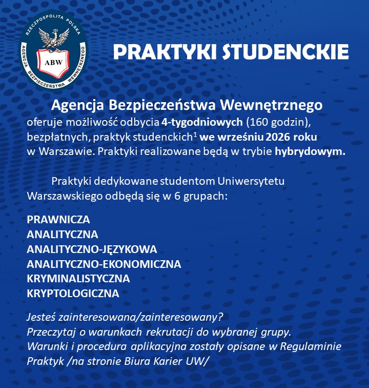 (160 godzin), bezpłatnych, praktyk studenckich 1 we wrześniu 2026 roku w Warszawie.