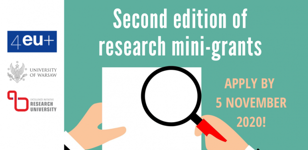 Druga edycja konkursu na minigranty dla międzyuczelnianych zespołów naukowych w ramach Sojuszu 4EU+ została otwarta. Minigranty będą finansowane z projektu „Inicjatywa doskonałości – uczelnia badawcza”. Wnioski należy składać do 5 listopada 2020 r.