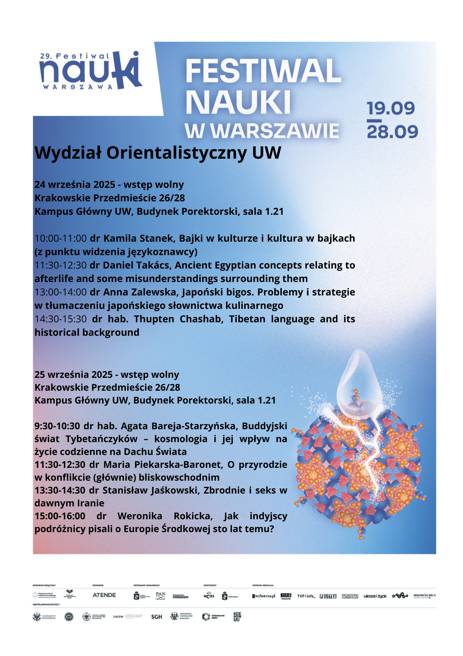 Już 24 i 25 września Wydział Orientalistyczny zaproponuje szereg interesujących prelekcji w ramach 27. Festiwalu Nauki w Warszawie.