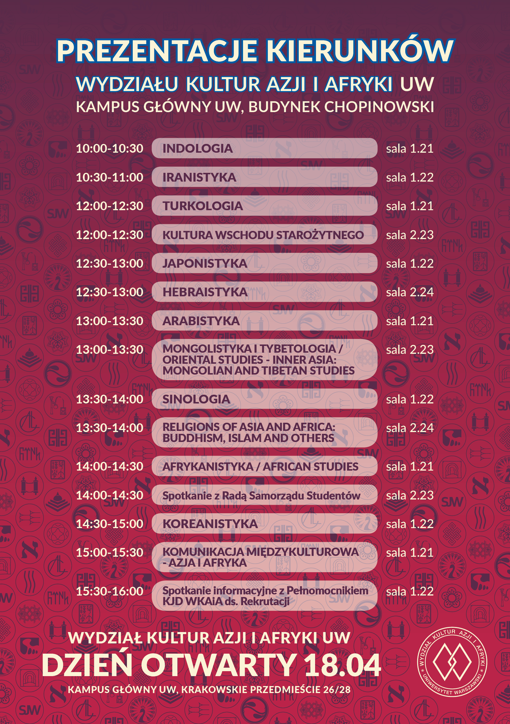 Dzień Otwarty na Wydziale Kultur Azji i Afryki UW 18 kwietnia